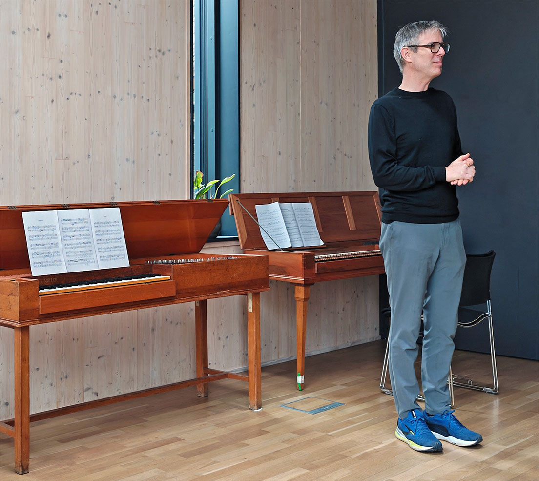 Das Konzert am Samstag Nachmittag spielte Lars Colding Wolf auf seinem Clavichord nach Hubert, nachgebaut von Karin Richter 1991. Er ist Organist in Sankt Markus in Aalborg und unterrichtet Cembalo, Orgel und Kammermusik in der Akademie von Aarhus. Er leitet das Barockorchester Ensemble Zimmermann.