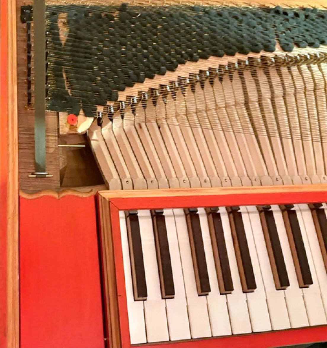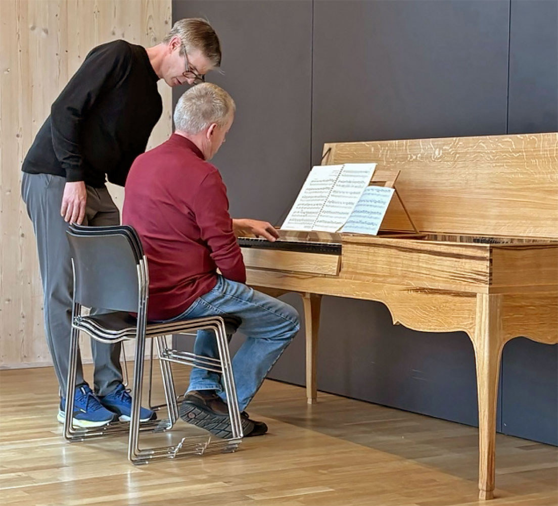 Die Aufhebung der Dämpfung bei einem Clavichord, also das Einsetzen des Pantalonregisters, hat bei der Zuhörerschaft einiges Erstaunen erzeugt; zur Freude des Erbauers!