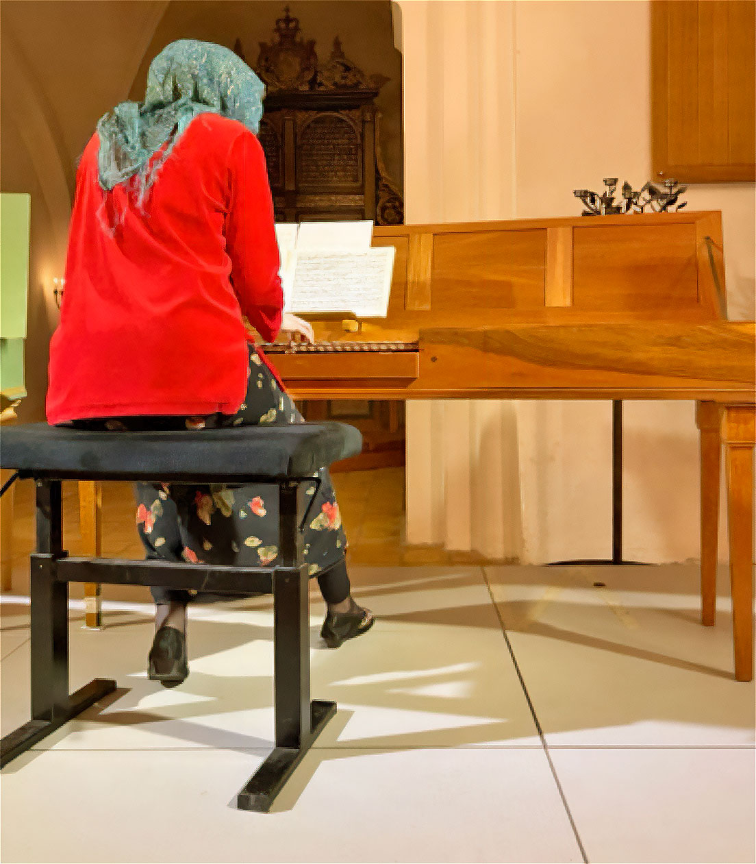 An diesem Abend spielte sie auf dem Clavichord nach Tannenberg und dem Pantalon-Clavichord. Wir hörten eine Reihe von schwedischen Komponisten: eine Sonate G-dur von Johan Helmich Roman (1694–1758), eine Sonate in C-dur von Hinrich Philip Johnsen (1717–1779), eine Sonate in Es-dur von Joseph Martin Kraus (1745–1792), dann hörten wir von Jean Sibelius (1865–1957) die „Cinq Morceaux“ (gespielt auf dem Pantalon, eine ganz ungewöhnliche Hörerfahrung!) und ein Capricio von Carl Ludwig Lithander (1773–1843). Das Konzert überraschte mit vielen uns unbekannten Komponisten, einer Vielfalt an Klängen durch die Möglichkeiten der beiden Instrumente und die großartige Spielweise von Anna Maria.