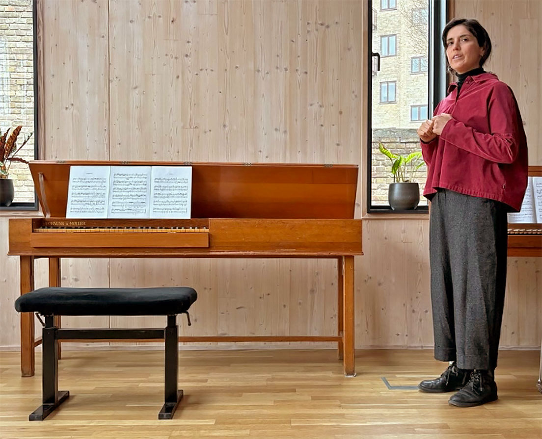 Am Sonntag stellte Valentina Villaseñor die in Kopenhagen vorhandenen Instrumente einer größeren Zuhörerschaft vor. Zu den bereits genannten kam noch das Clavichord nach Friederici von Gregor Bergmann und das von Hornung & Møller aus dem Conservatorium Copenhagen. Valentina studierte Cembalo, Clavichord und Kontinuo bei Jacque Ogg, Patrick Ayrton und Bernhard Klapprott. Sie hat in den vergangenen Jahren mehrere Konzerte gespielt, auch für die Deutsche Clavichord Societät (DCS). Sie war Stipendiatin der DCS. Seit 2024 ist sie Vizepräsidentin in deren Vorstand.