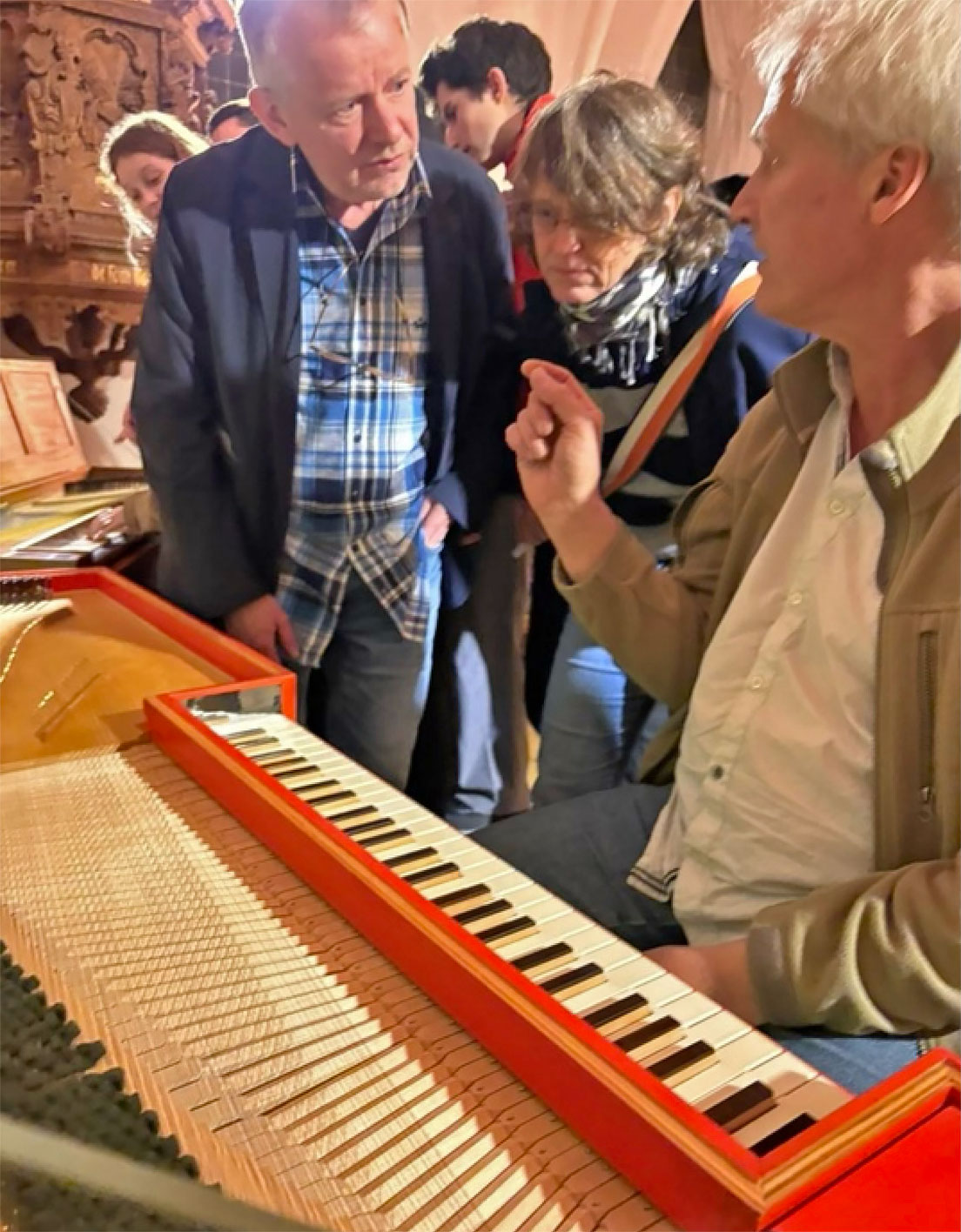 Presentations included Alfons Huber’s illustrated lecture on his monumental (nearly 800 pages) book “Clavichord Construction 1400–1800”, a comprehensive exploration of the structural and technological development of the clavichord, reflections on the founding of the German Clavichord Society by Alfred Gross, and a masterclass on “The Keyboard Sonatas of Ernst Wilhelm Wolf” by Paul Simmonds.
