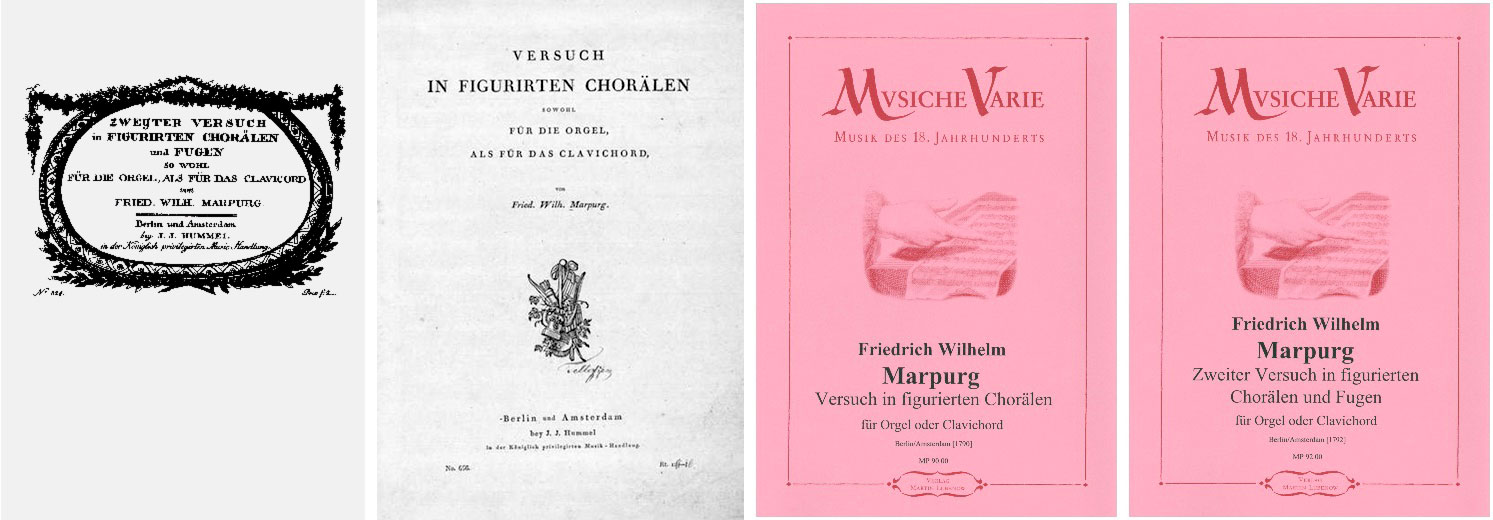 Aus Anlass ihres 25-jährigen Bestehens initiierte die Deutsche Clavichord Societät mit Blick auf die Schwerpunktthemen ihrer 44. Clavichordtage vom 02. bis zum 04. November 2018 in Göttingen eine Notenausgabe von Friedrich Wilhelm Marpurgs VERSUCH IN FIGURIRTEN CHORÄLEN SOWOHL FÜR DIE ORGEL, ALS FÜR DAS CLAVICHORD sowie seines ZWEYTEN VERSUCHS IN FIGURIRTEN CHORÄLEN UND FUGEN, beide erschienen in Berlin und Amsterdam gegen Ende des 18. Jahrhunderts ohne Jahresangabe.