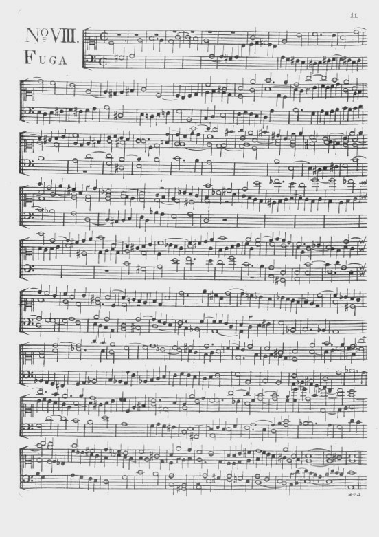 Wir freuen uns sehr, über ein gewisses Kontingent dieser Ausgabe zu besonderen Konditionen verfügen zu können, zugänglich für Mitglieder der DCS und ihrer Schwestergesellschaften. Während der Normalpreis für Heft 1 (mit den Chorälen, 40 Seiten stark) € 18.–, für Heft 2 (mit Chorälen, Fugen und Capriccio, 28 Seiten) € 16.– und für beide Hefte zusammen € 30.– beträgt und entsprechende Ausgaben über den Notenfachhandel oder direkt über den Verlag (www.musichevarie.de) zu beziehen sind, können diese beide „Versuche“ zusammen für € 20.– erwerben. Die Bezahlung erfolgt gegen Rechnung. Bestellungen bitten wir unter Angabe von Stückzahl und Versandadresse formlos an den Vorstand zu richten (vorstand@clavichord.info). Als Beispiel seien hier die Vorlage und der Beginn der Transkription einer der Fugen wiedergegeben: